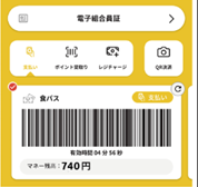 - 1日の利用限度額を超過する場合は生協電子マネーを使って不足分を精算したり、現金でお支払いいただけます。そのため生協加入時・食パス申し込み時に生協電子マネーチャージも併せてお申し込みいただくことをおすすめいたします。