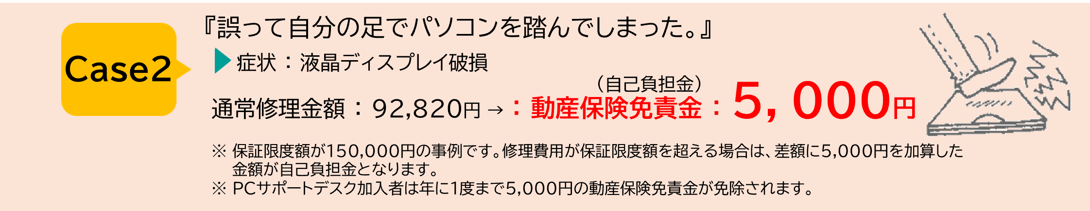 自室で踏んで液晶を割ってしまう、など様々な修理依頼は実に年間300件ほど。そのような修理にも保険が適応されます。(※限度額あり)