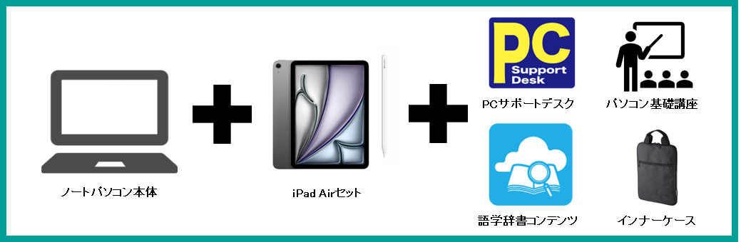 大学生活に必要なサポート・講座・iPad・辞書コンテンツ付き。