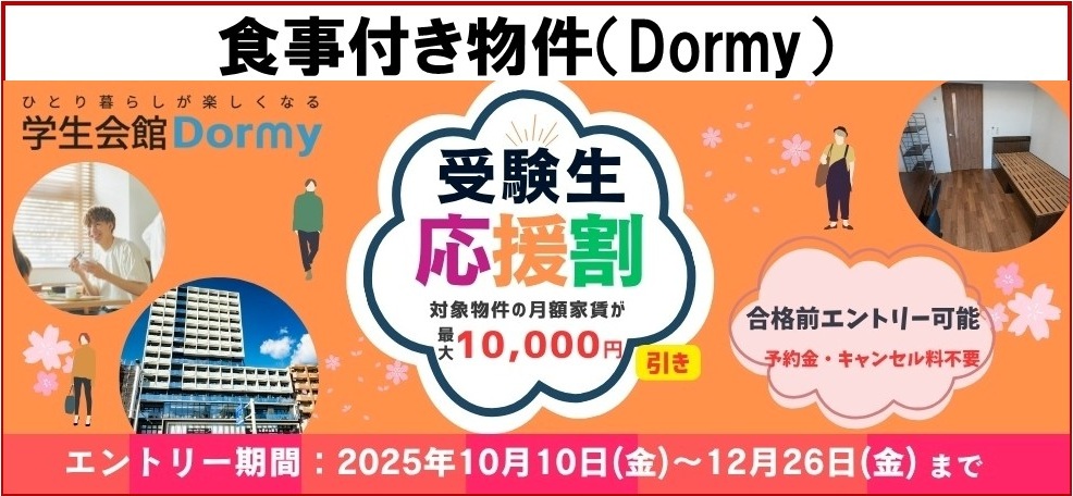 受験前から受験日までに探されると比較的多くの物件から選ぶことができるので