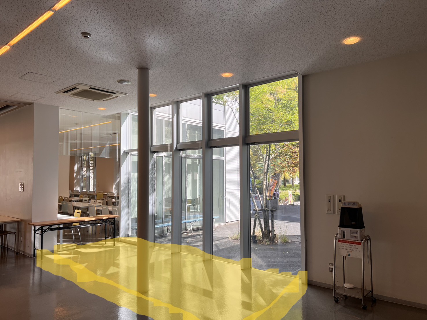 場所:場所:Mei-dining店内、出口付近スぺース(画像:黄色塗りつぶしスペースにて)