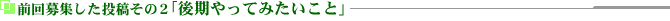 | 何でもどうぞ。例えば、クリスマスとお正月について・食堂の冬メニュー・年賀状、などなんでも気が向いたことを送ってください。 |