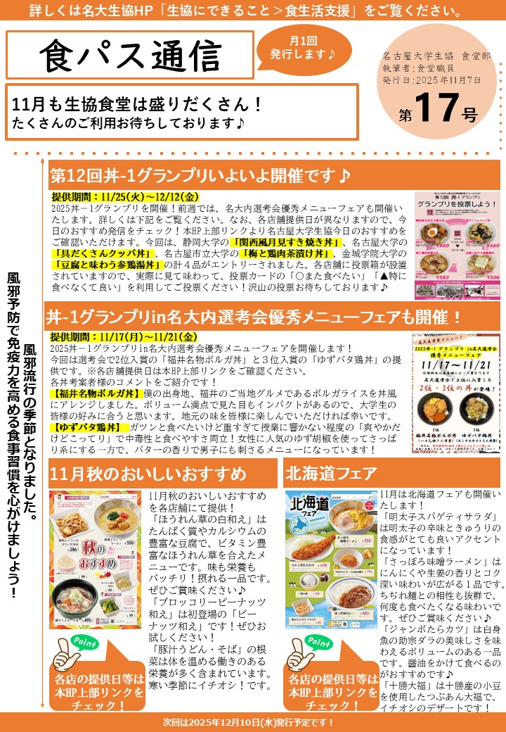 11月も生協食堂は盛りだくさんです!たくさんのご利用お待ちしております♪