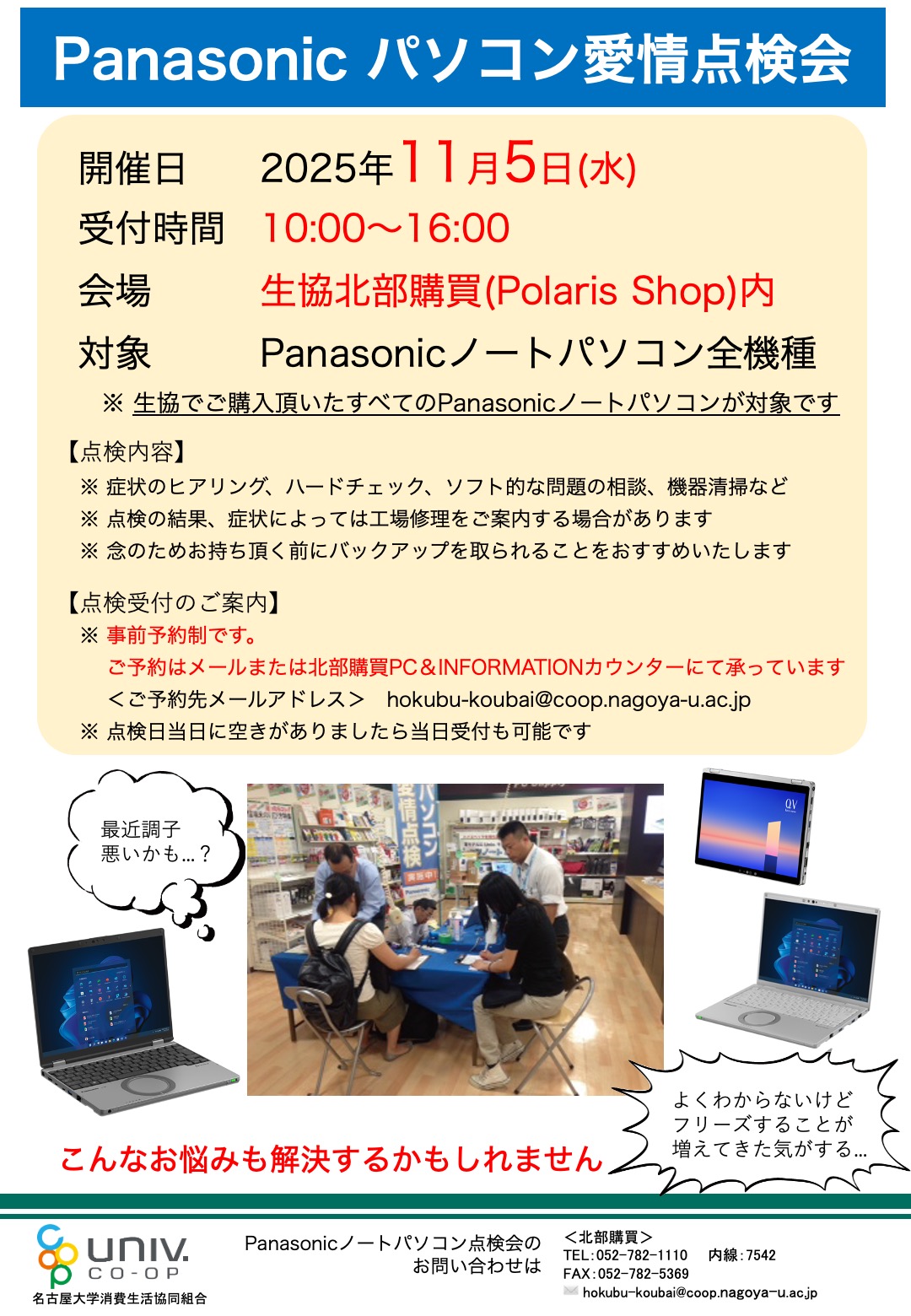 - Panasonicノートパソコン愛情点検会を11月5日(水)に実施します
