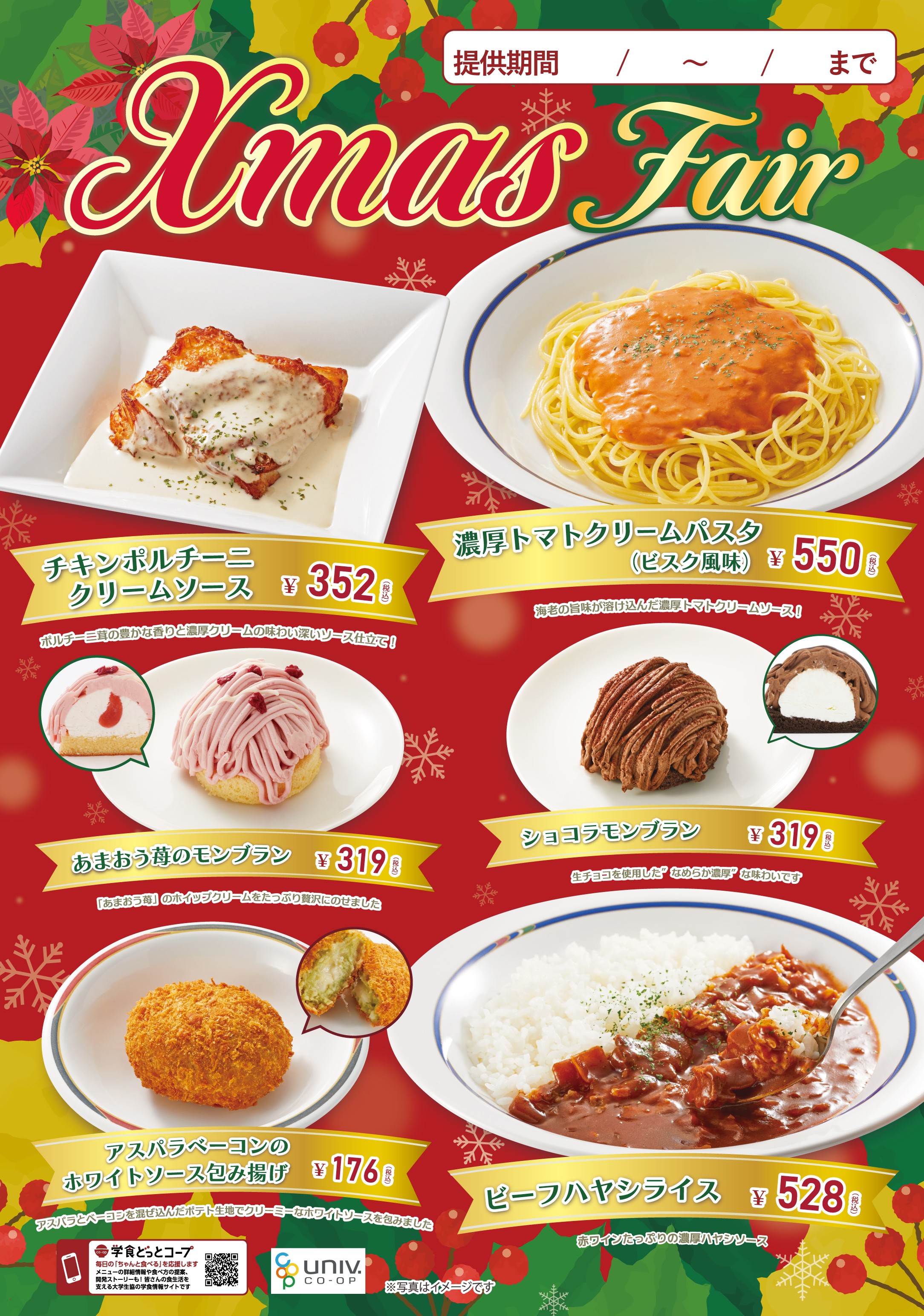 Merry Christmas!「クリスマスフェア」今年も開催します!クリスマスにぴったりのメニューを多数ご用意しています☻