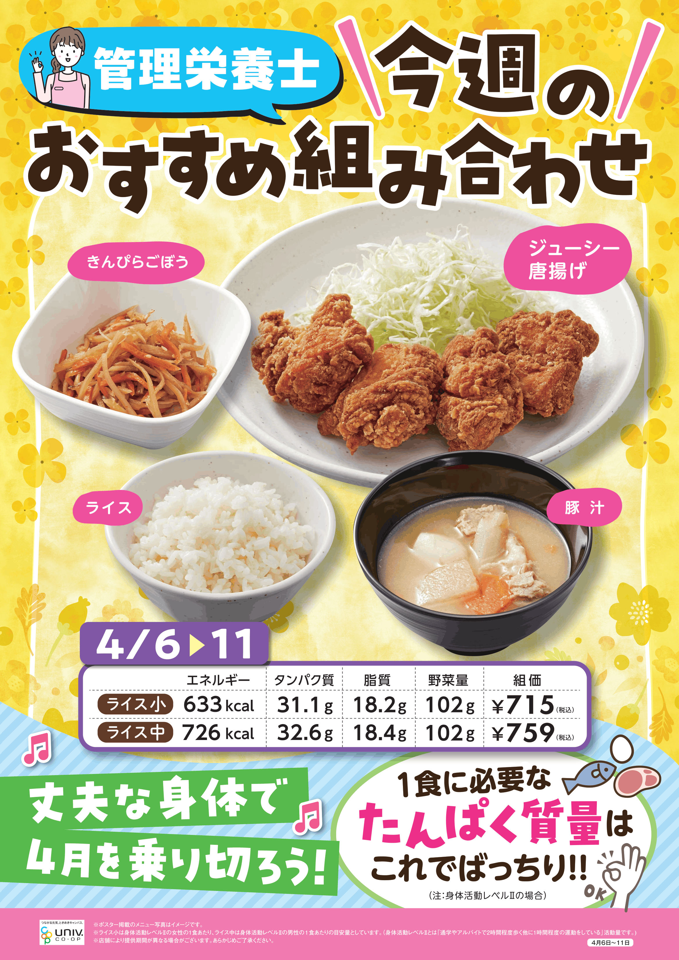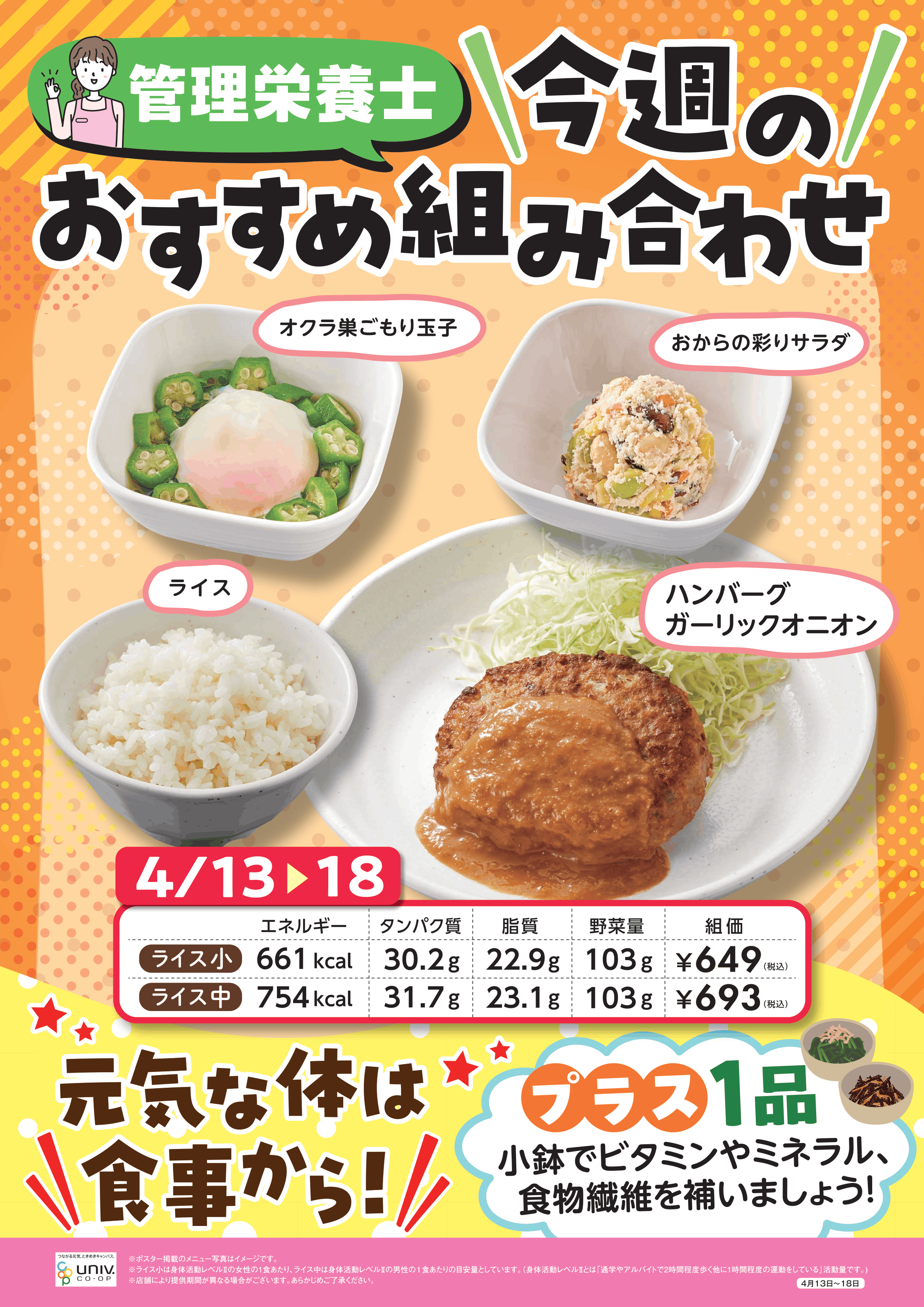 おすすめメニューをバランス良く管理栄養士推奨おすすめの組み合わせのご提案です!バランスの良い食事を心がけましょう
