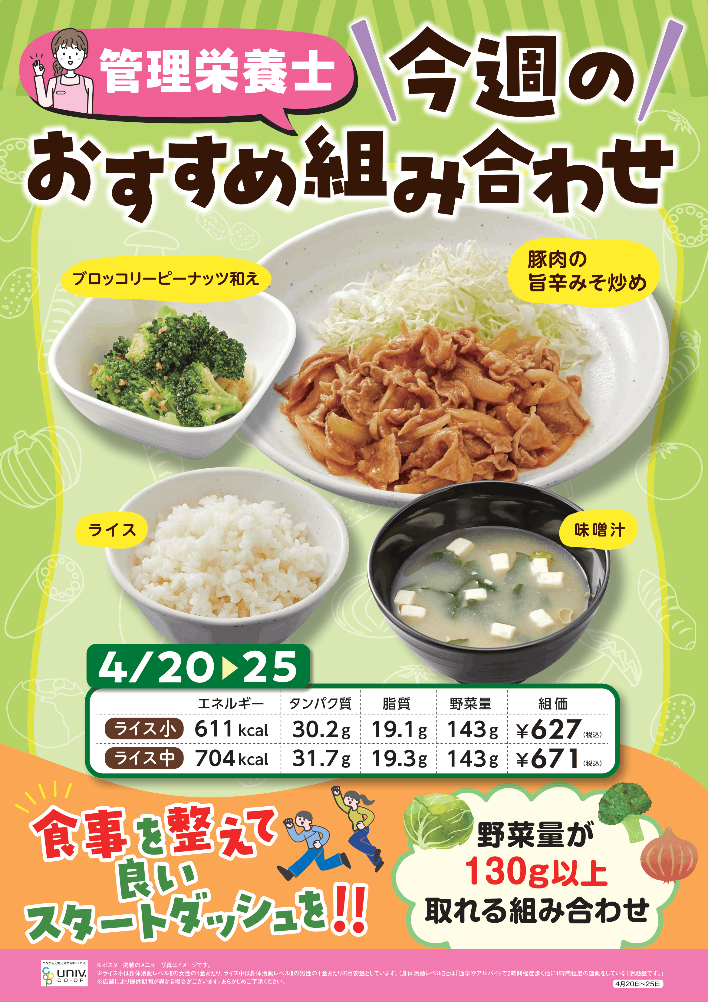 - 豚肉の旨辛みそ炒め 4/20~4/24