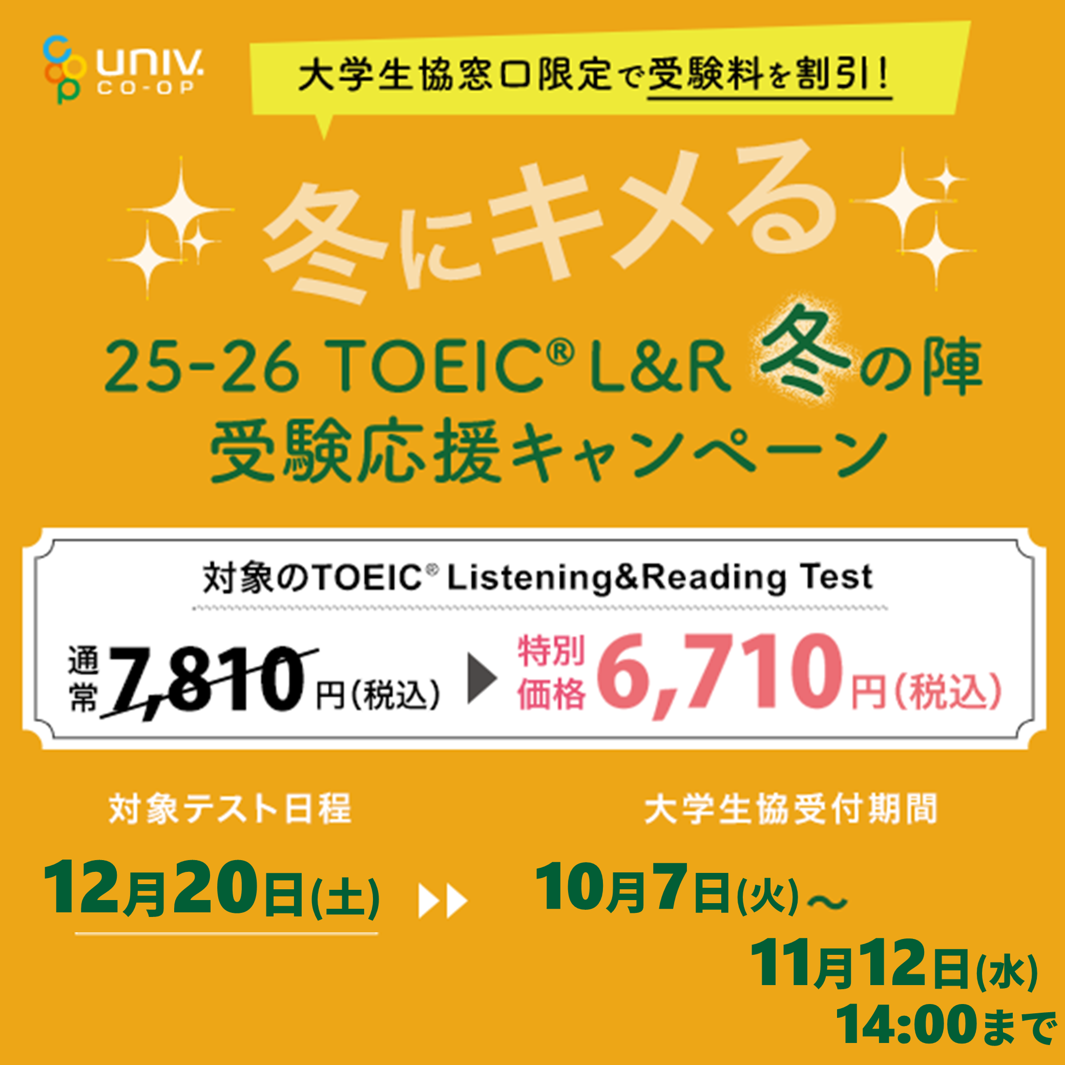 【大学生協限定】2025冬TOEIC受験応援キャンペーン