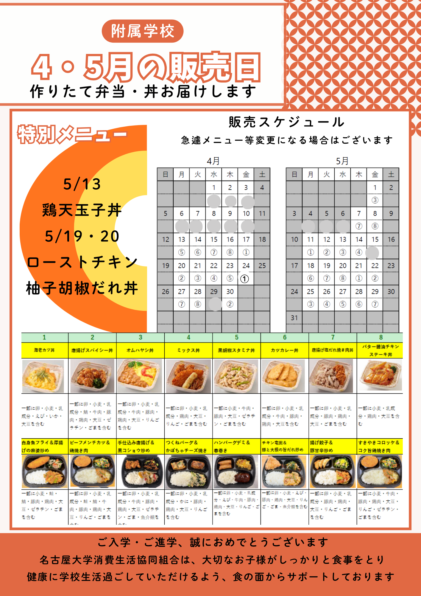 附属学校の方向けランチボックスメニュー