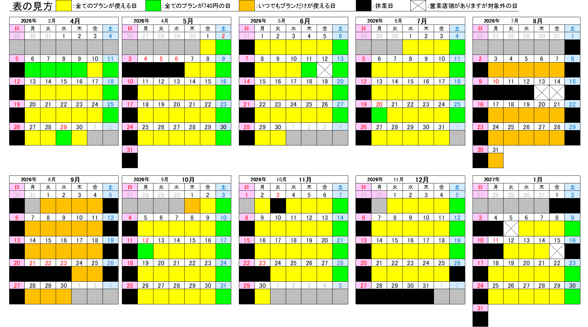 2026年04月6日(月)~2026年07月31日(金)2026年10月02日(金)~2027年01月30日(土)